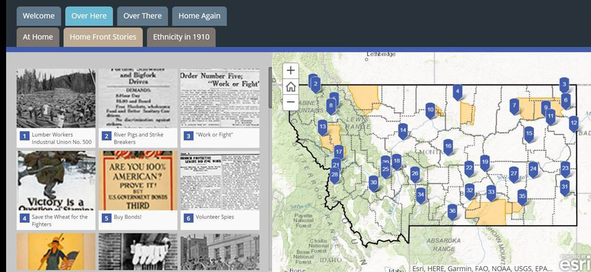 - Story Maps: interactive maps featuring images and events from across the state, exploring different ways the war—and its aftermath—affected Montanans.